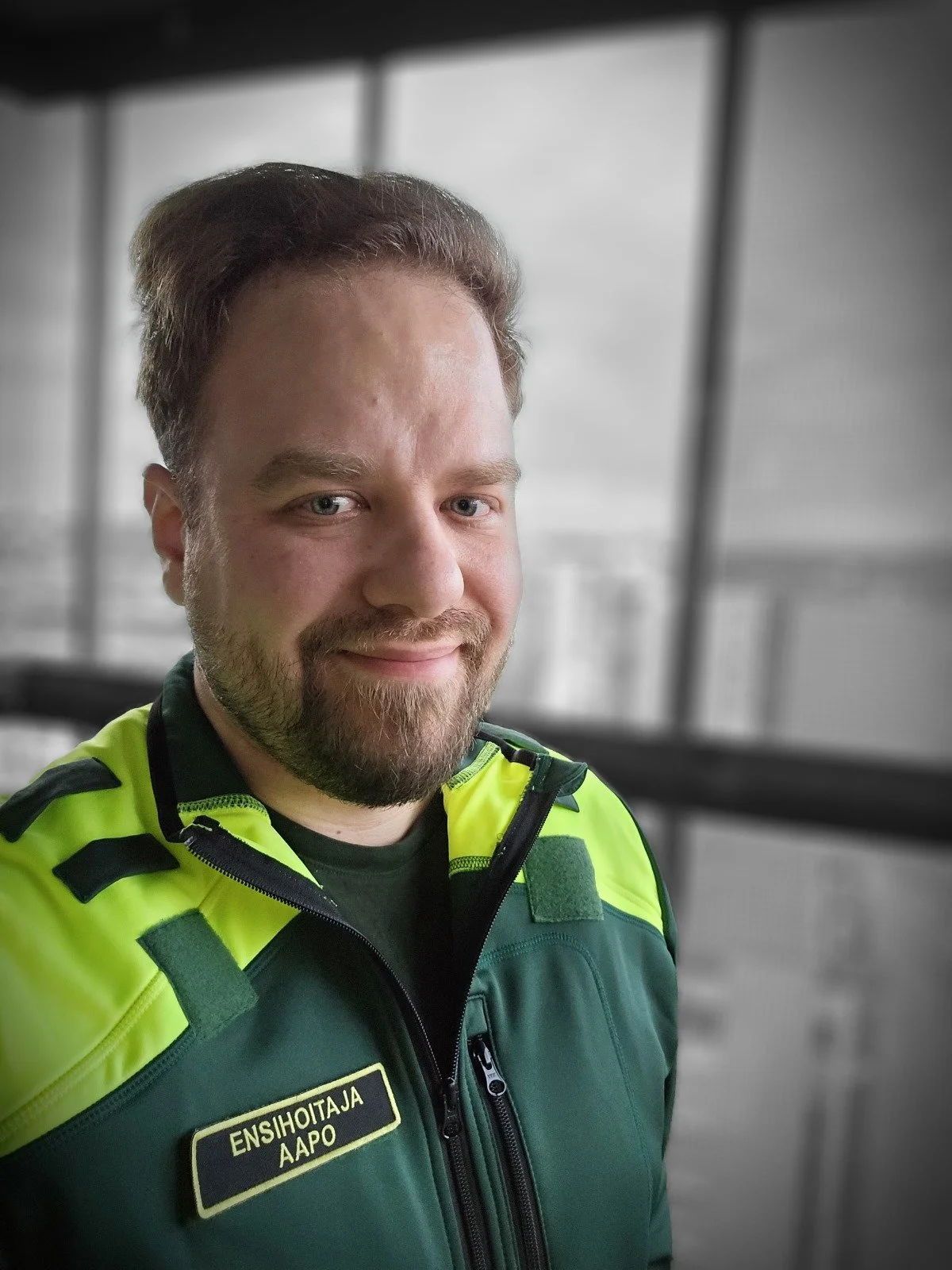 Kokenut sairaanhoitaja ja hoitotason ensihoitaja Aapo Liukko toimii jokaisella kurssilla kouluttajana. Hän on työskennellyt yli kahdeksan vuoden ajan monipuolisesti eri terveydenhuollon osa-alueilla, painottuen kuitenkin nimenomaan akuutti- ja ensihoitoon. Aapo on työskennellyt Suomessa usean eri sairaalan päivystyksessä, sekä kiireellisessä ensihoidossa kahdella eri hyvinvointialueella. Oppia on haettu myös ulkomailta, kuten Lontoosta ja Chicagosta. Parhaillaan Aapo viimeistelee maisteritason opintojaan Akuutti- ja Ensihoidon kehittäminen ja johtaminen - tutkinnossa, Oulun ammattikokorkeakoulussa. Lisäksi Aapo on suorittanut ensiapukouluttajan lisäkoulutuksen.